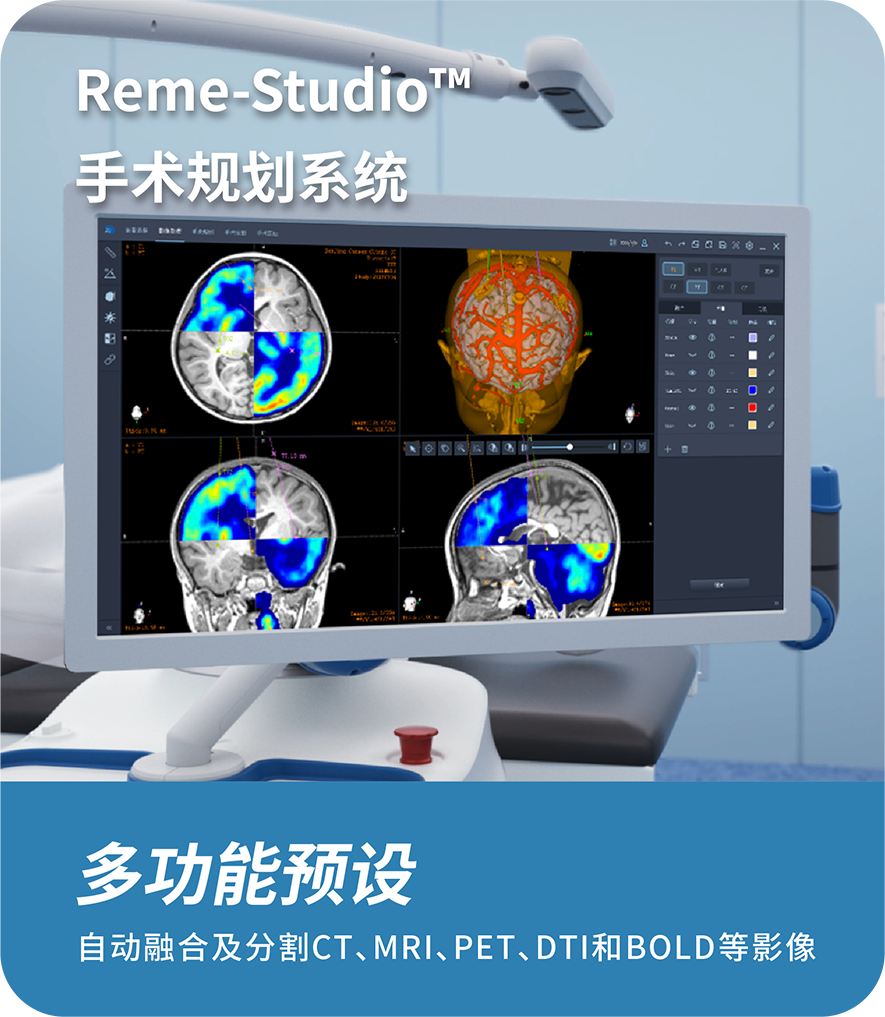 Q:睿米?手術(shù)規(guī)劃軟件包含什么功能?A:手術(shù)規(guī)劃軟件可實現(xiàn)包含CT、MRI、PET、DTI等多模態(tài)影像融合,多種組織分割以及高級影像處理功能,滿足神經(jīng)外科手術(shù)影像處理及手術(shù)規(guī)劃多種需求。